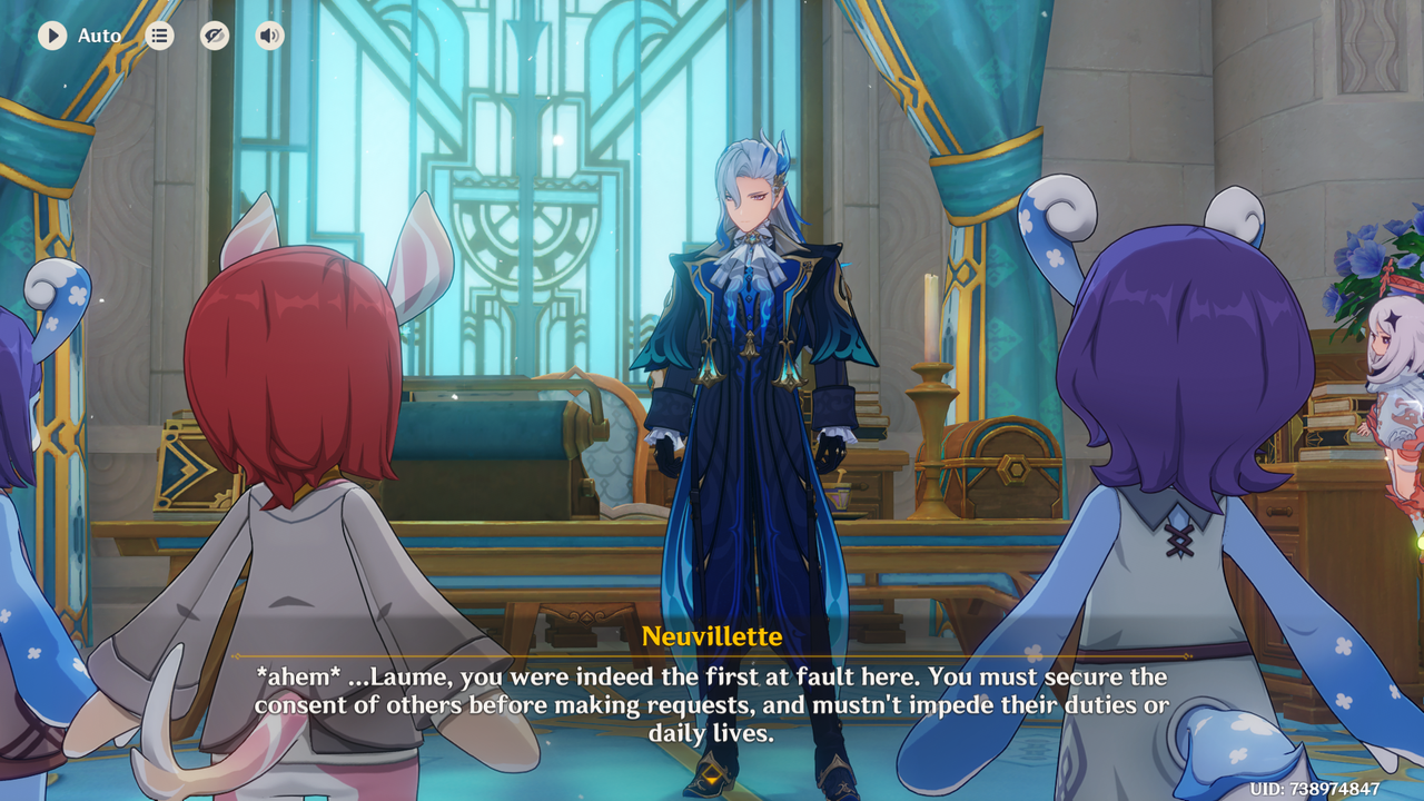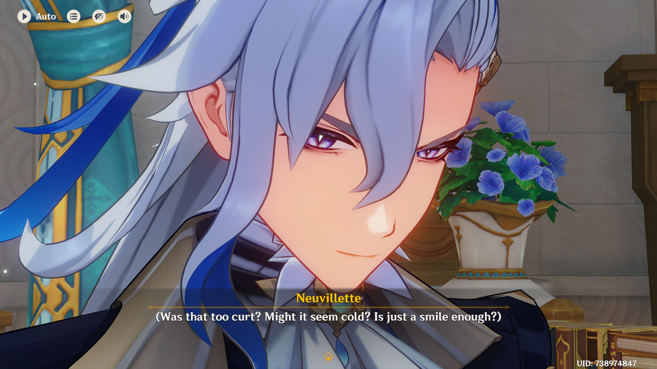Neuvillette decided that best way to express his happiness is trying on the outfit.