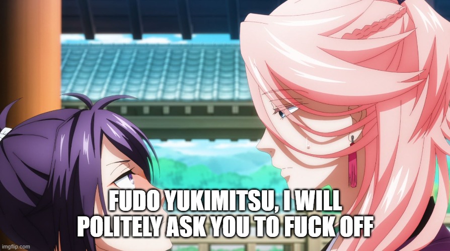 Fudou Yukimitsu manifesting in the Citadel. He is gorgeous too. Everyone is gorgeous.